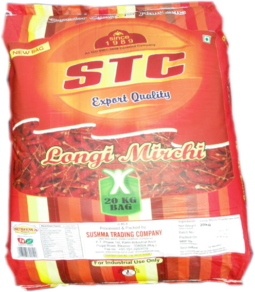 SUSHMA TRADING COMPANY is a widely acclaimed organization engaged as the manufacturer and wholesale supplier of STC LONGI MIRCHI. Mr. RAM LAL AGRAWAL Established this company in 1989, the company has successfully established a distinct position for itself owing to the delivery commitments, customer satisfactions and supreme quality of products.